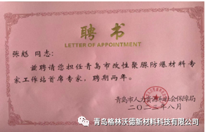 喜訊!我司獲批2023年青島市“改性聚脲防爆材料”專家工作站。